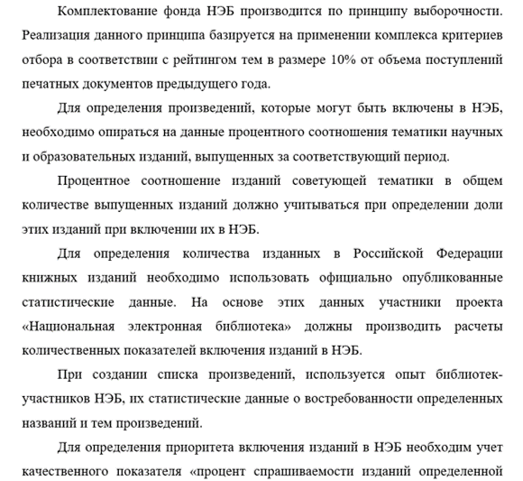 Наполнение фонда Национальной электронной библиотеки производится путем оформления лицензионных договоров с правообладателями. они имеют неисключительные права на использование научных и образовательных произведений путем воспроизведения произведений в цифровой форме. Далее оцифрованные документы передаются для размещения в НЭБ и предоставляются в безвозмездное пользование пользователям библиотек в соответствии с условиями лицензионных и требованиями законодательства Российской Федерации.