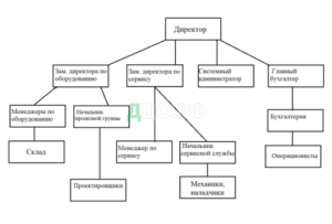 Заместитель директора по оборудованию контролирует работу менеджеров по оборудованию, которые в свою очередь курируют деятельность склада. Так же в подчинении заместителя находится начальник проектной группы, куда входят проектировки. Задача проектировщиков это составление проектов по всевозможным видам объектов, с подробным описанием видов работ и составлением смет.