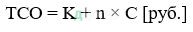 Для расчета суммы общих затрат на разработку автоматизированной подсистемы ведения финансовой документации и отчетности для компании ООО ПК «ВентКомплекс» нужно рассчитать Совокупную стоимость владения (TCO), которую находят по формуле 1.