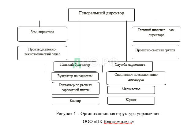 ООО «ПК Венткомплекс» состоит из нескольких структурных подразделений, находящихся под непосредственным руководством гендиректора, и эти подразделения включают в себя ИТ-отдел, бухгалтерию, отдел маркетинга и коммерческий отдел. Главная ответственность гендиректора заключается в организации работы и обеспечении эффективного взаимодействия всех этих подразделений.