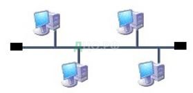 Компьютеры соединены последовательно. При подобной структуре топологии все клиенты имеют равноправный доступ к сети (рис. 1).