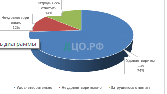 Как показывают данные диаграммы, 74% удовлетворены полнотой и понятностью представленной информации, 12% высказали неудовлетворенность, 14% затруднились с ответом.