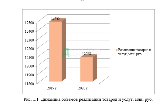 Динамика объемов реализации товаров и услуг показана на рисунке 1.1. Прибыль от реализации снизилась в 2020 году на 39,57% в отношении 2019 года.