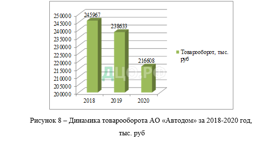 Для анализа финансово-хозяйственной деятельности предприятия АО «Автодом» рассмотрим динамику товарооборота АО «Автодом», представленную на рисунке 8.