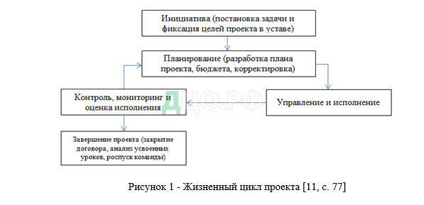 Каждый проект характеризуется жизненным циклом, на основе которого формируется стандартный подход к проектному управлению. Жизненный цикл проекта представлен на рисунке 1.