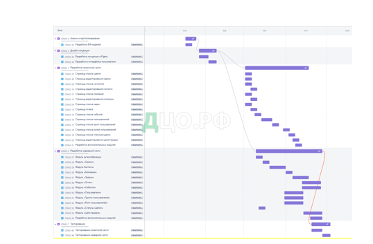 Таким образом был выявлен ряд задач необходимых к выполнению работ для успешной реализации. Итоговый срок реализации проекта составил 144 календарных дня.