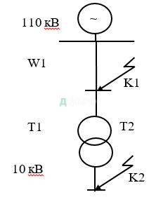 Исходная расчётная схема для расчёта токов КЗ на понизительной подстанции ПС-110/35 кВ «Западно-Салымская» Западно-Салымского нефтяного месторождения представлена на рисунке 2.