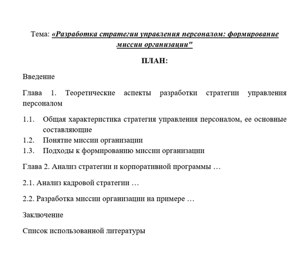 Целью данной работы является исследование процесса формирования миссии организации в рамках разработки стратегии управления персоналом.