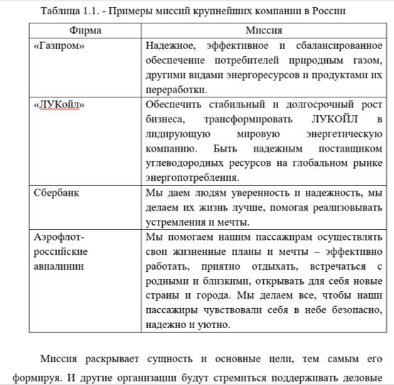 Литература по менеджменту дает различные формулировки и характеристики рассматриваемой категории. Так, например, Гаитов А.А., Насырова С.И. в своей работе определили миссию, как «генеральная цель организации, характеризующая, что представляет собой организация, зачем она существует и каково ее единственное в своем роде место. Выбрать такую цель — значит ответить на основной вопрос: «Чем мы занимаемся?»[5].