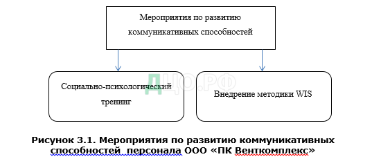На основании выявленных проблем были предложены мероприятия по развитию коммуникативных способностей персонала, такие как: проведение социально-психологического тренинга и внедрение методики WIS для создания мотивационных профилей сотрудников.