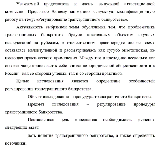 Уважаемый председатель и члены выпускной аттестационной комиссии! Предлагаю Вашему вниманию выпускную квалификационную работу на тему: «Регулирование трансграничного банкротства».