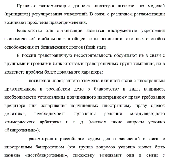 Чтобы исправить такое положение вещей, потребуется значительное время. И формирование специальной регламентации трансграничной несостоятельности здесь только первый шаг. Основой всего этого служит широкий теоретический фундамент, наработанный годами.