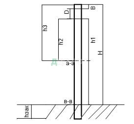 Определяем напряжения в опоре. В основной стойке наибольшие напряжения создаются в сечении а-а и в месте заделки опоры в землю, т. е. в сечении в-в.