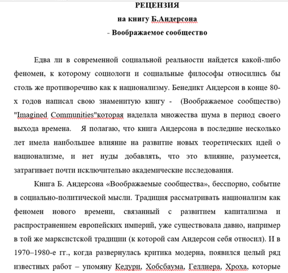 Необходимо отметить, что Б.Андерсон, рассматривал вопрос наций и национализмов с помощью конструктивистского подхода. Этнический конструктивизм – это детище ХХ века, когда на романтический национализм одновременно обрушилась критика справа и слева.