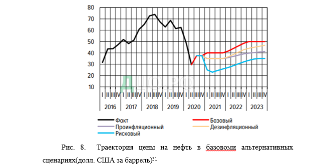 Траектория цены на нефть в базовом и альтернативных сценариях представлена на рисунке 8.