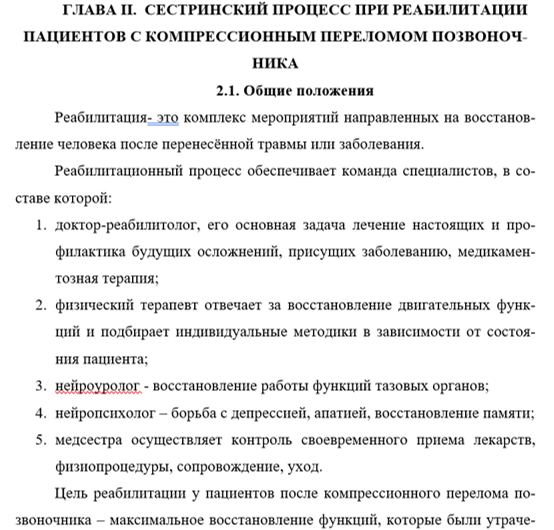 - обосновать роль сестринской деятельности в обеспечении эффективной реабилитации пациентов с компрессионным переломом позвоночника;
