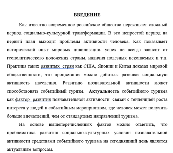 Как известно современное российское общество переживает сложный период социально-культурной трансформации. В это непростой период на первый план выходит проблемы активности человека. Как показывает исторический опыт мировых цивилизации, успех не всегда зависит от геополитического положения страны, наличия полезных ископаемых и т.д. Практика таких развитых стран как США, Японии и Китая доказал мировой общественности, что процветания можно добиться развивая социальную активность населения. Развитию познавательной активности может способствовать событийный туризм. Актуальность событийного туризма как фактор развития познавательной активности связан с тенденцией роста интереса у людей к событийным мероприятиям, где человек может получить больше впечатлений, чем от стандартных направлений туризма.