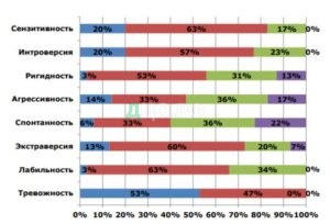 Спонтанность ярко выражена у 6% работников АНО «Северская автошкола», остальные работники стремятся обдумывать высказывания и следить за своими поступками. Сензитивность и впечатлительность прослеживается у большинства 63% работников АНО «Северская автошкола», а вот подозрительность и гипоинертность только у 3% работников, их критичность в отношении мнений и субъективизм, повышено стремление к отстаиванию своих взглядов и принципов.