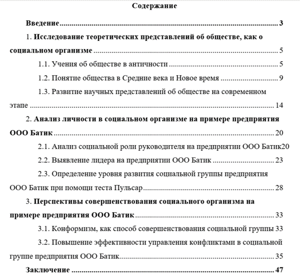 В третьей главе планируется предложить перспективы совершенствования социального организма на примере ООО Батик.
