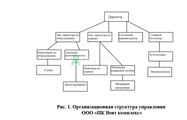 Рассмотрим представленную организационную структуру компании ООО «ПК Вент комплекс» изложенной на рис.1. Эта структура относится к типу линейно-функциональной.
