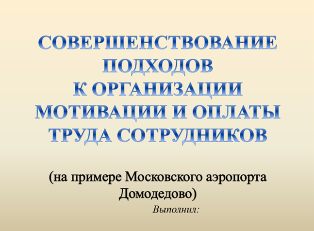 Тема: Совершенствование подходов к организации мотивации и оплаты труда сотрудников (на примере Московского аэропорта Домодедово)