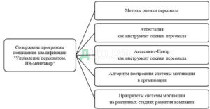 По мнению автора, чтобы улучшить процесс оценки персонала в ООО «ЛГМ Строй», необходимо направить директора на курсы повышения квалификации. Элементы программы повышения квалификации представлены на рисунке 12.