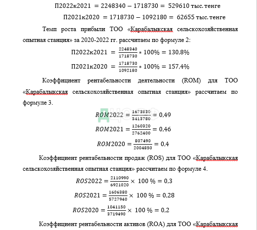 ТОО «Карабалыкская сельскохозяйственная опытная станция» продолжает свое развитие в условиях перемен. Стабильный рост выручки, прибыли и рентабельности продаж свидетельствуют непосредственно об успешной деятельности компании и эффективном управлении ее ресурсами, которая готова к преодолению сложностей и стремится непосредственно к дальнейшему развитию на рынке Казахстана.