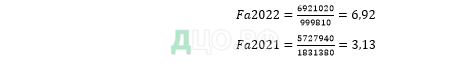 Фондоотдачу ТОО «Карабалыкская сельскохозяйственная опытная станция» за 2020-2022 гг. рассчитаем по формуле 8: