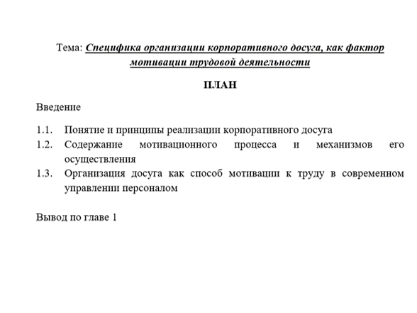 Тема: Специфика организации корпоративного досуга, как фактор мотивации трудовой деятельности
