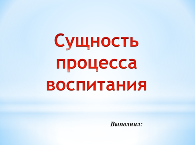 Тема: Сущность процесса воспитания