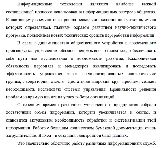 С течением времени различные учреждения и предприятия собрали достаточный объем информации, который увеличивается и сейчас, и становится актуальным необходимость обработки и систематизации этой информации. Работа с большим количеством бумажной документации очень затруднительно. Выход — в создании электронной базы данных.