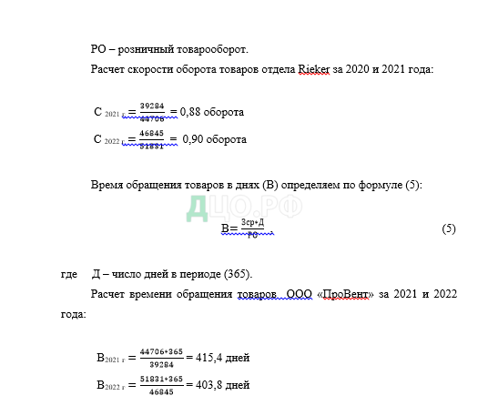Товарооборачиваемость – время, необходимое для полного обновления запаса, или количество дней, за которое оборачивается средний товарный запас. Измеряется данный показатель количеством оборотов, совершенных товарными запасами за исследуемый период и продолжительностью одного оборота.