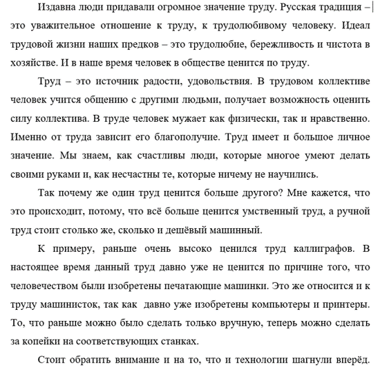 Труд – это источник радости, удовольствия. В трудовом коллективе человек учится общению с другими людьми, получает возможность оценить силу коллектива. В труде человек мужает как физически, так и нравственно. Именно от труда зависит его благополучие. Труд имеет и большое личное значение. Мы знаем, как счастливы люди, которые многое умеют делать своими руками и, как несчастны те, которые ничему не научились.