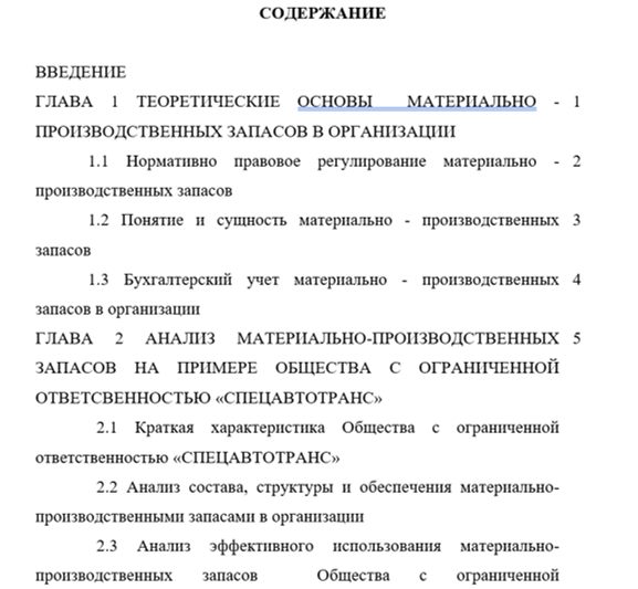 Тема: Учет и анализ материально-производственных запасов в организации на примере ООО «СПЕЦАВТОТРАНС»