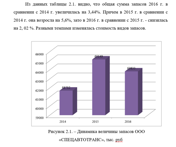 -рассмотрим динамику изменения величины запасов ООО «СПЕЦАВТОТРАНС» в 2014-2016 гг., тыс. руб.