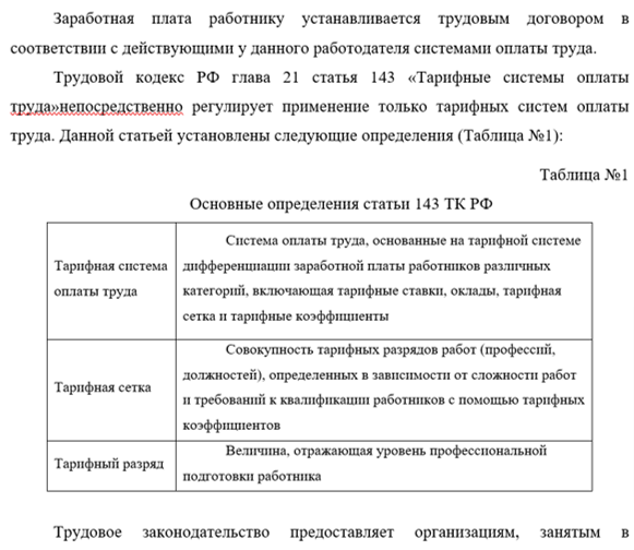 Основные законодательные нормы по вопросам организации и оплаты труда оговорены в Трудовом кодексе Российской Федерации (далее ТК РФ) [3].