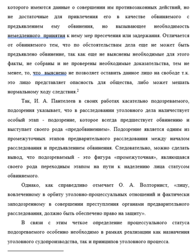 Актуальность темы исследования. Уголовное судопроизводство, согласно положениям ст. 6 Уголовно-процессуального кодекса Российской Федерации, имеет своим назначением защиту прав и законных интересов лиц, в этом нуждающихся. Как свидетельствует правоприменительная практика, значительная часть нарушений прав человека допускается именно на этапе подозрения, и одна из основных причин этого — ущербность нормативной регламентации уголовно-процессуальной деятельности на этапе подозрения. Одной из наиболее важных фигур на данном этапе расследования преступления является подозреваемый как лицо, подвергающееся уголовному преследованию.