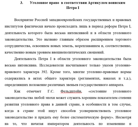 — анализ влияния реформ Петра I на развитие отечественного уголовного права.