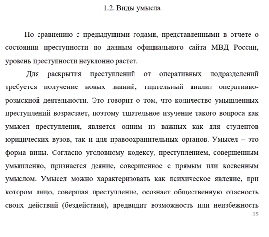 Объектом исследования является: умысел как одна из форм вины.