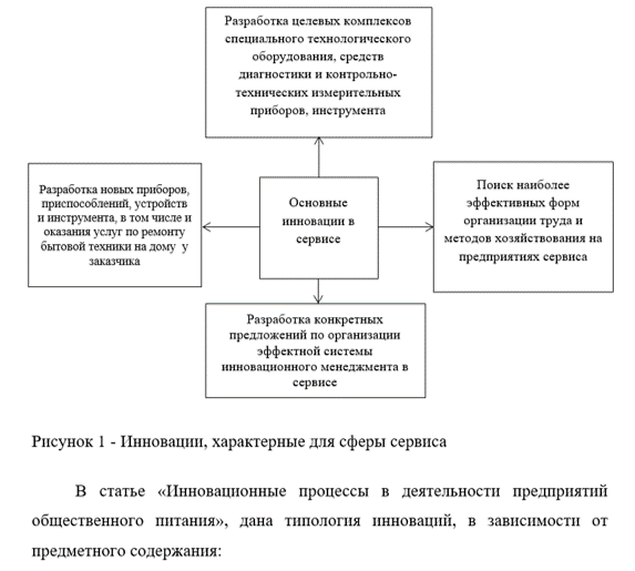 К основным нововведениям относятся новые виды услуг и формы обслуживания заказчиков. Они могут изменять: