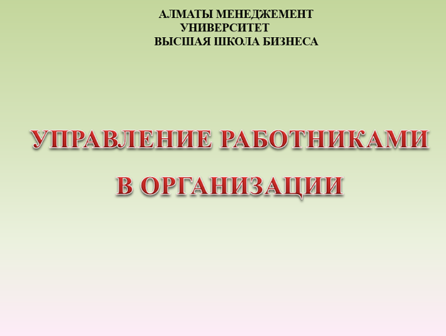 Уважаемые члены государственной аттестационной комиссии! Разрешите представить вашему вниманию диссертацию на соискание академической степени магистра делового администрирования на тему: «УПРАВЛЕНИЕ РАБОТНИКАМИ В ОРГАНИЗАЦИИ». В нынешних условиях руководителям предприятий и специалистам по работе с кадрами нужны научно доказанные рекомендации для решения стратегических вопросов в сфере развития соответственной политики, т.к. исключительно на их основании имеется возможность принимать грамотные решения по отбору и найму штата, оценке, мотивации и аттестации сотрудников, их обучению и подъему квалификации. Поиск увеличения эффективности управления работниками в организации как особенной функции работы, сопряженной с наймом сотрудников, их обучением, применением и оплатой их труда является содержанием диссертационной работы, характеризует ее новизну и актуальность.