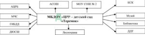 Таким образом, в рамках анализа направлений деятельности в социальной сфере МБДОУ «ЦРР — детский сад «Теремок» сотрудничает со школами райцентра, ЦРБ, участвует в мероприятиях Культурно-спортивного комплекса, Дома детского творчества, ДЮСШ, краеведческим музеем.