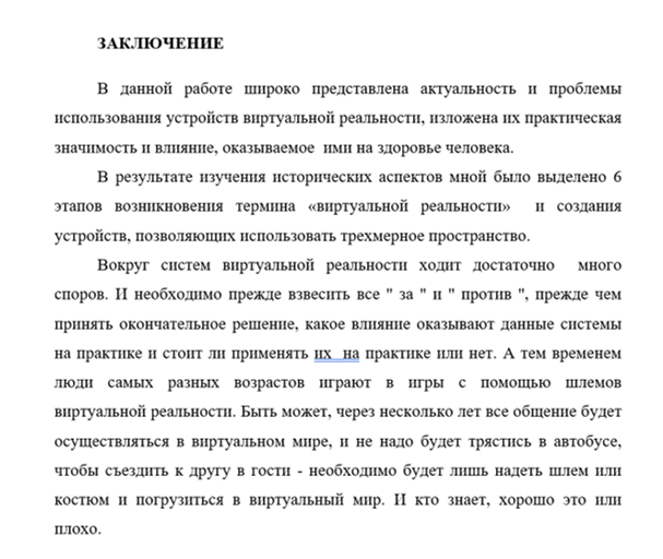 4 – проанализирована степень влияния процесса использования виртуальных очков на человека.