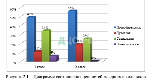 Данные результаты коррелируют с результатами других исследований и подтверждают наличие данной тенденции, которая ориентирует на получение всех благ «просто так», без вложения собственных усилий. Такая фокусировка приводит к регрессу в отношении духовного и культурного развития младших школьников, так как этот возраст характеризуется активным формированием картины мира.