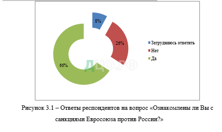 Следующий вопрос позволяет узнать ознакомлены ли респонденты с санкциями Евросоюза против России (см. рисунок 3.1).