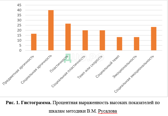 Анализ выраженности индивидуально-психологических особенностей темперамента, диагностируемых с помощью методики В.М. Русалова показал проявление низких значений по шкалам пластичность, темп/скорость и социальная эргичность у 7 из 9 человек.