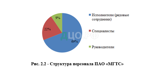 В структуре персонала ПАО «МГТС» наибольший удельный вес занимают исполнители (рядовые сотрудники) — 68,97%.