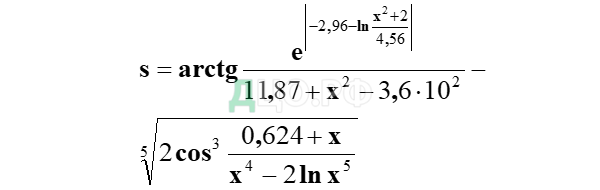 Вычислить значения сложного выражения при двух заданных значениях аргумента х1 и х2 (таблица 3).