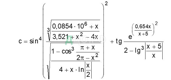 Вычислить значения сложного выражения при двух заданных значениях аргумента х1 и х2 (таблица 3).