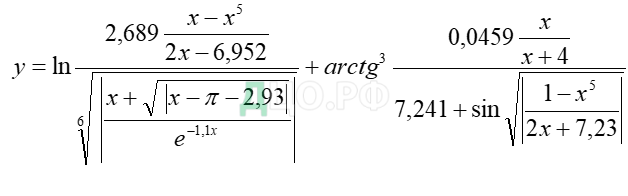 Вычислить значения сложного выражения при двух заданных значениях аргумента х1 и х2 (таблица 3).